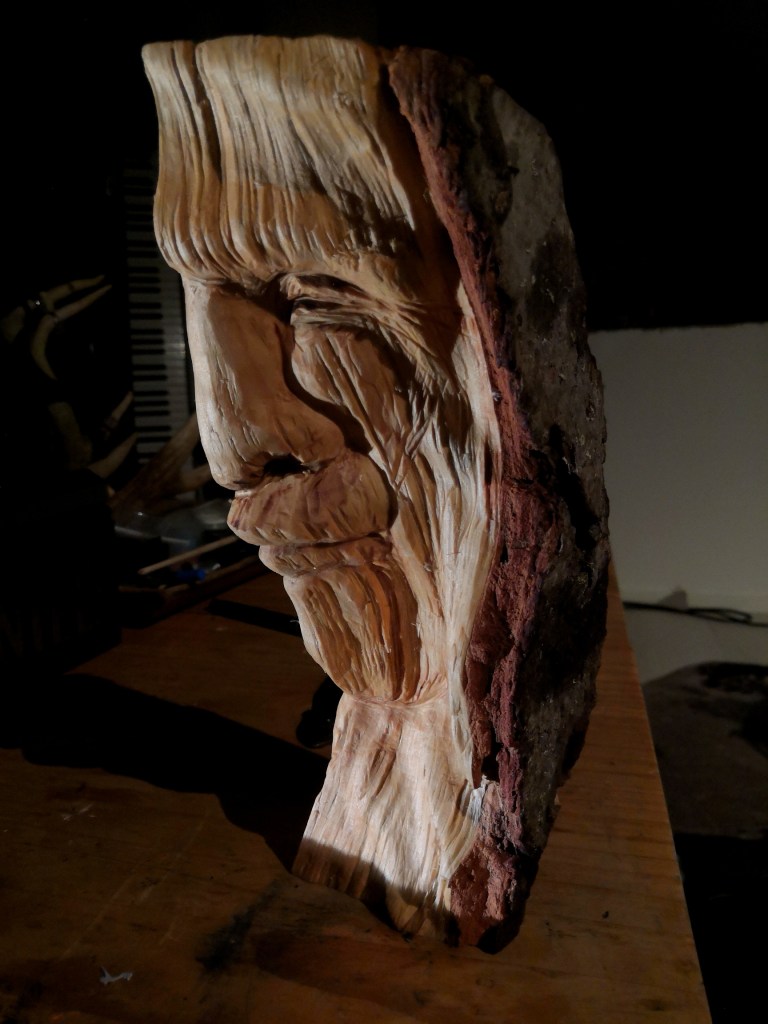 This old wood spirit was brought into existence when the Wind blew its tree down just before the last ray of light pierced through the woods. As it came down the Night tried to take hold of it. To stop it from falling. So did the Day light with its last ray. But it couldn’t hold the tree either from falling. So the tree got badly twisted. Twisted by the day, and twisted by the night. And that’s how began the saga of famous Døkkrdagr Slitamiǫtviðr.His name in Younger Futhark so i guess he spoke the old norse